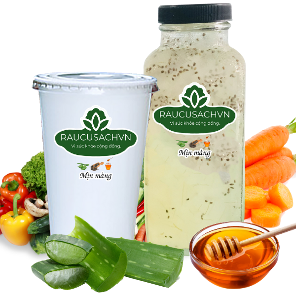 - Nước ép Mịn màng có màu trắng trong veo tự nhiên, lấm tấm hạt đen do sự hoà trộn của nha đam, hạt chia Úc, chanh...mùi vị thơm ngon, bổ dưỡng
